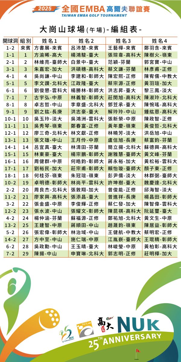 挑戰組-大崗山高爾夫球場編組表