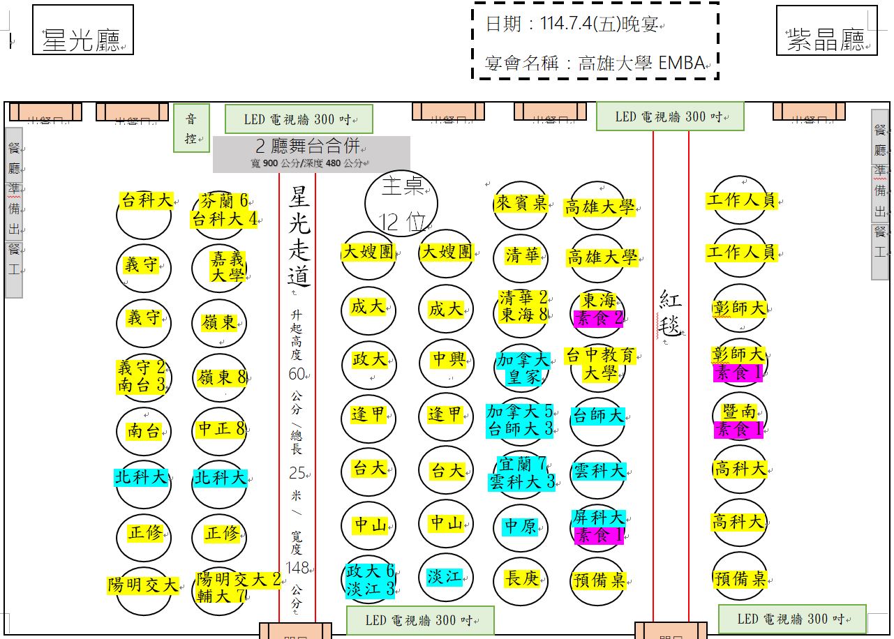 2025全國EMBA高爾夫球賽晚宴餐廳座位表